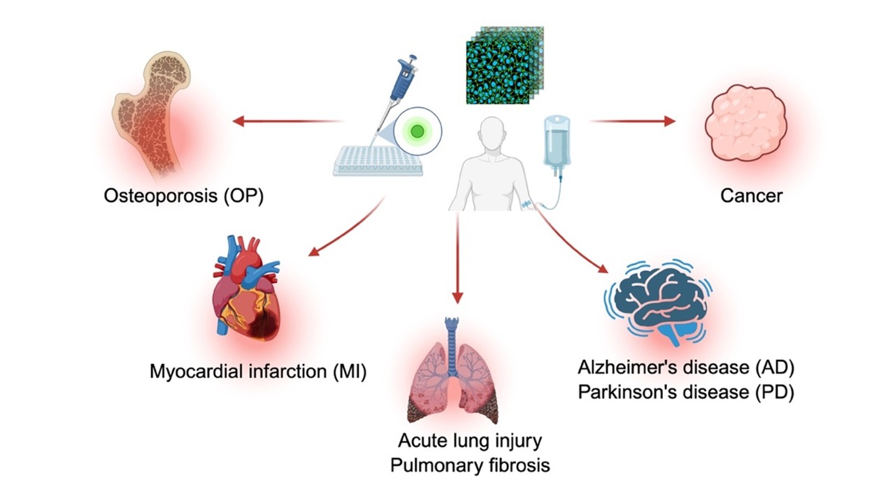 We develop multifunctional platforms that combine diagnosis, imaging, and therapy to support personalized treatment in oncology, immune-related diseases (e.g., acute lung injury, pulmonary fibrosis, atherosclerosis, myocardial infarction, osteoporosis), and neurodegenerative disorders (e.g., Alzheimer’s, Parkinson’s).