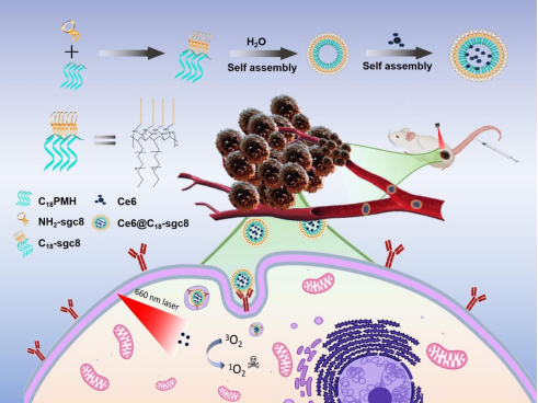 图5:C18-sgc8的合成方法及其在靶向光动力治疗中的应用。 Ganghui Chen et al. Aptamer-based self-assembled nanomicelle enables efficient and targeted drug delivery. Journal of Nanobiotechnology 2023. (IF=10.2) DOI: 10.1186/s12951-023-02164-y https://jnanobiotechnology.biomedcentral.com/articles/10.1186/s12951-023-02164-y